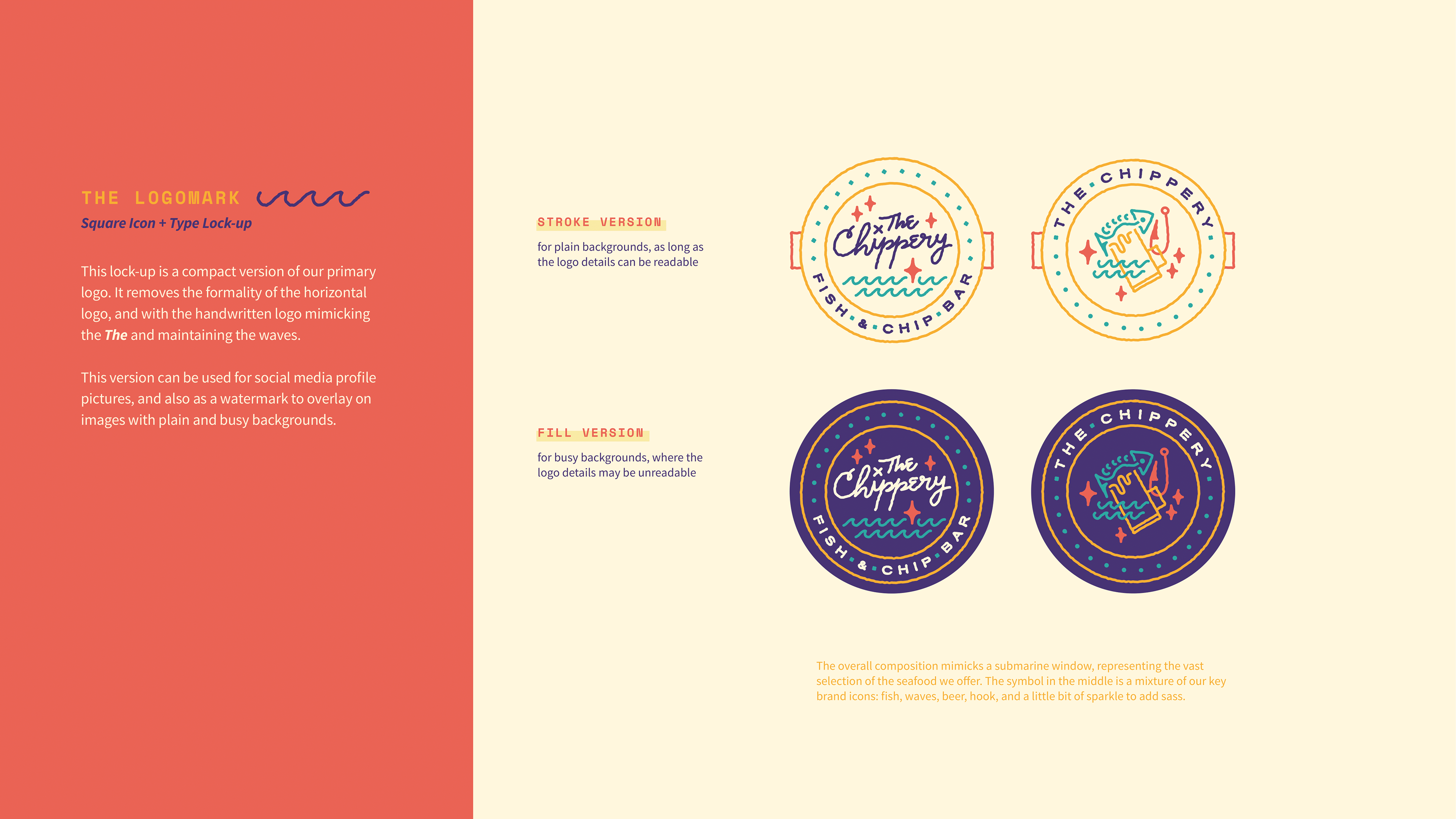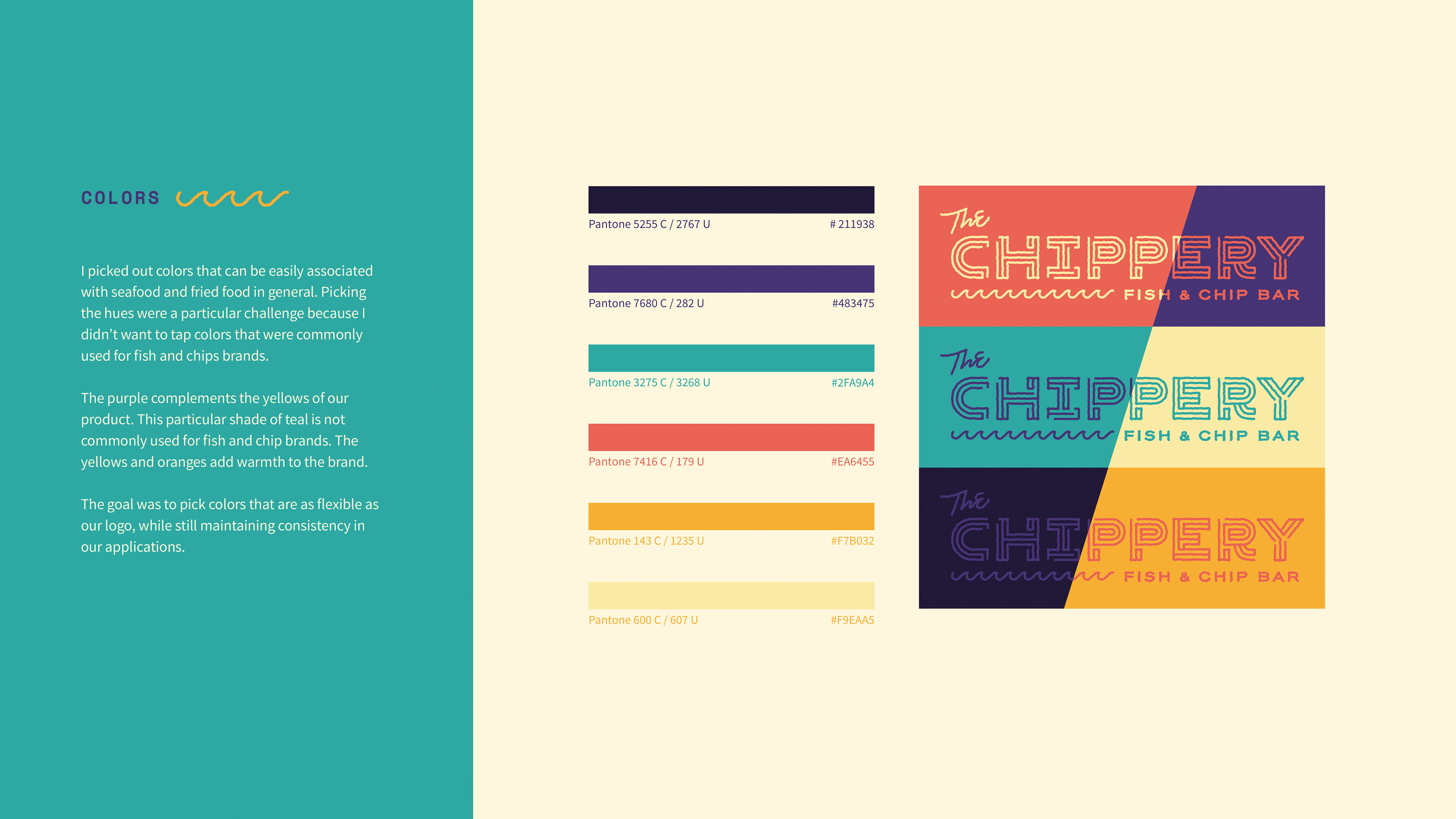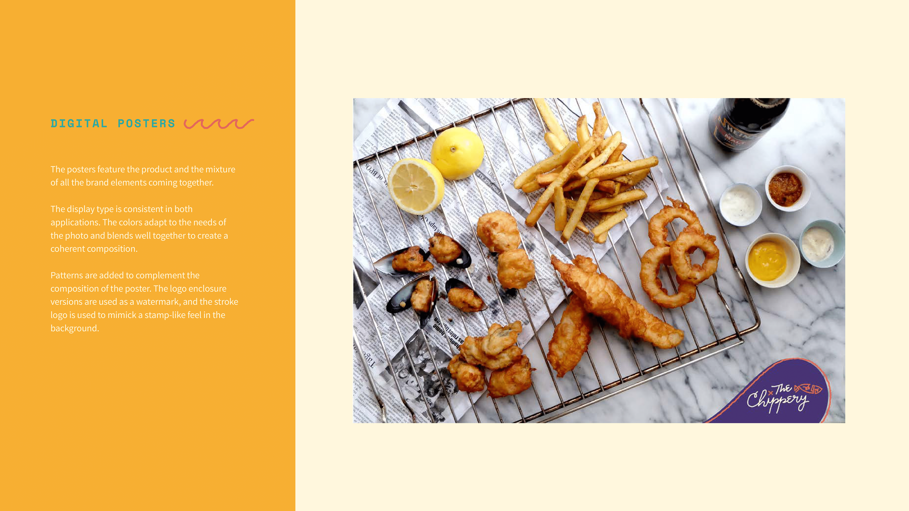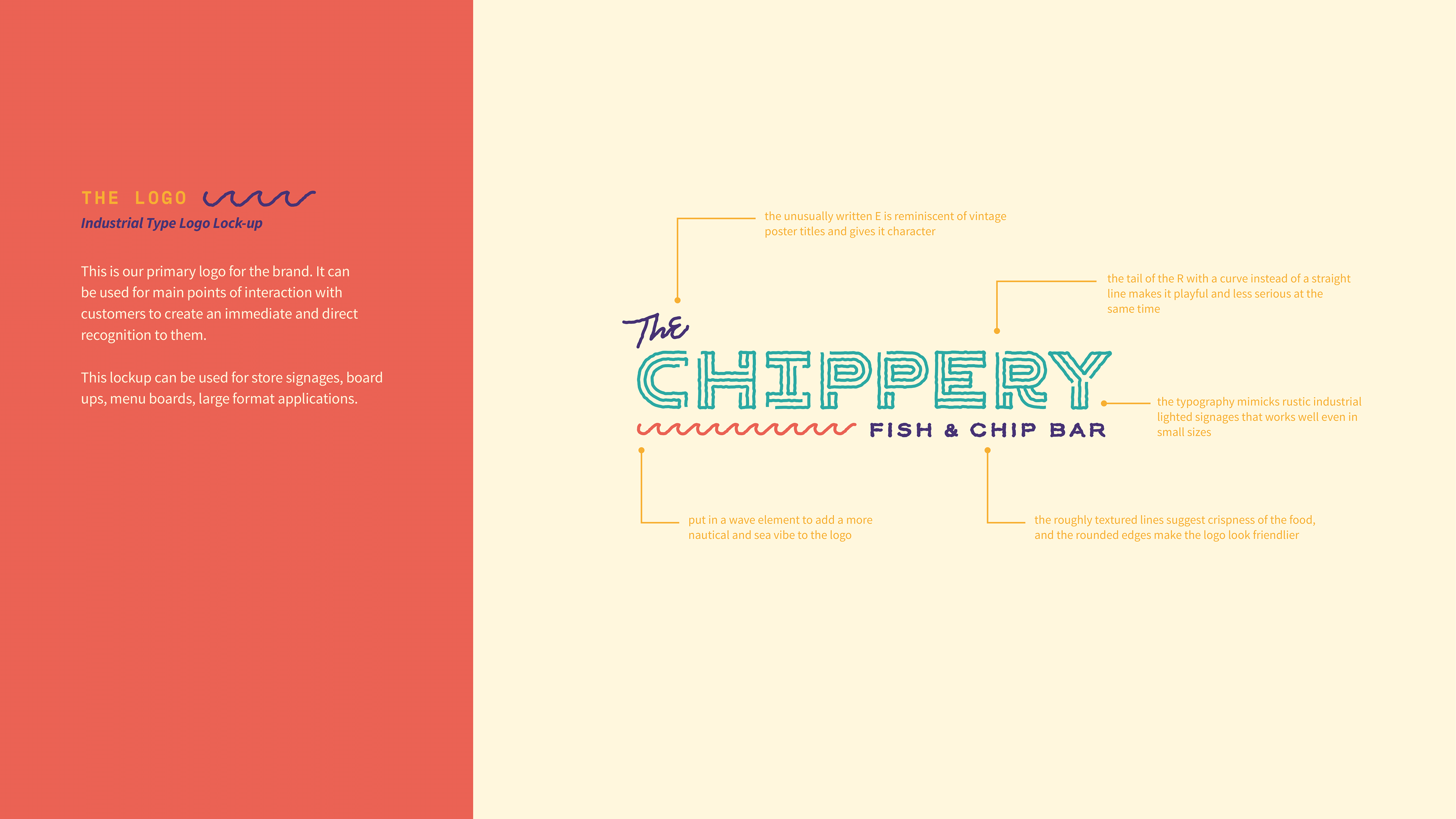 A brand guide of the visual identity for a client's fish and chips bar in 2016.