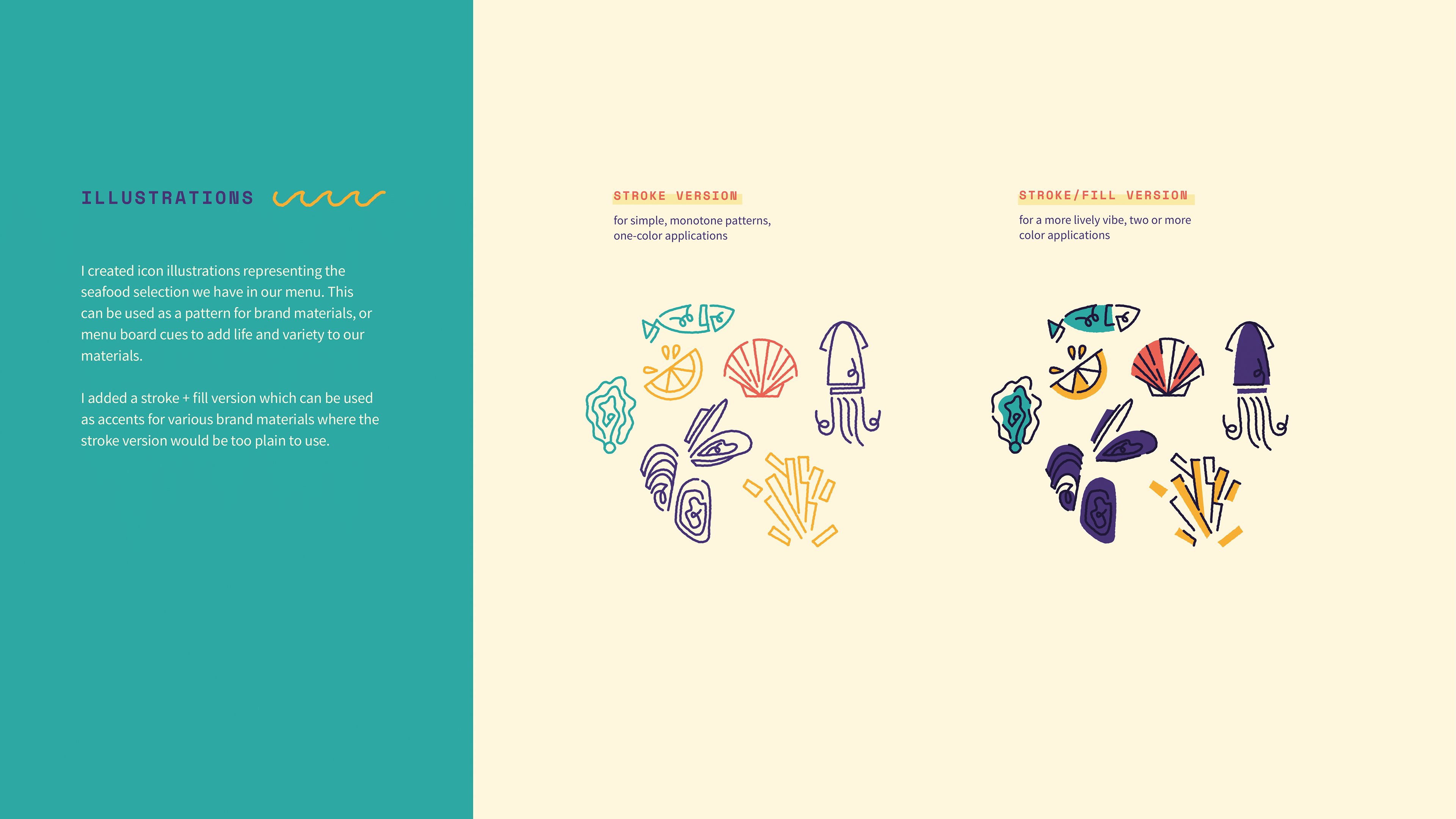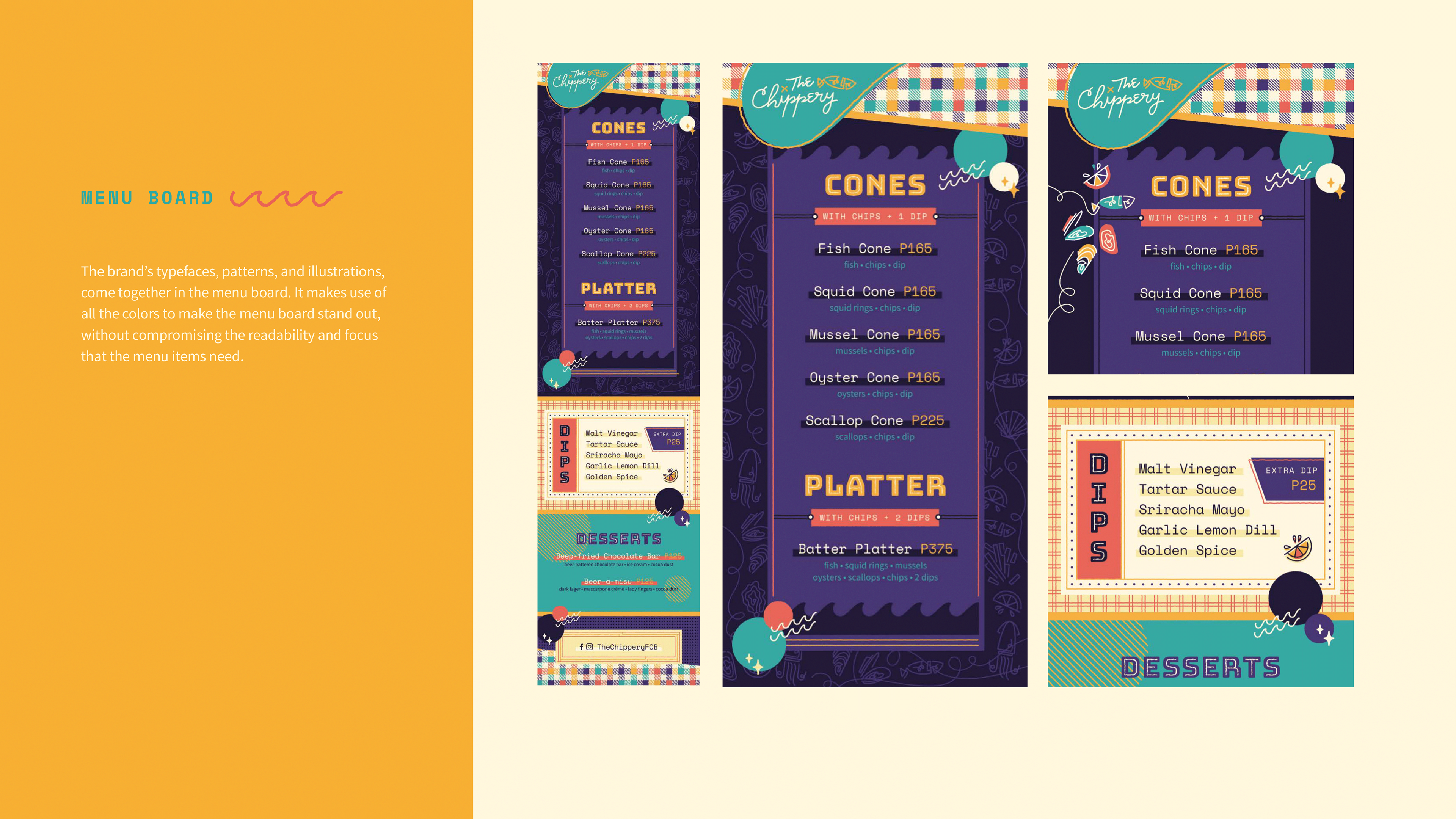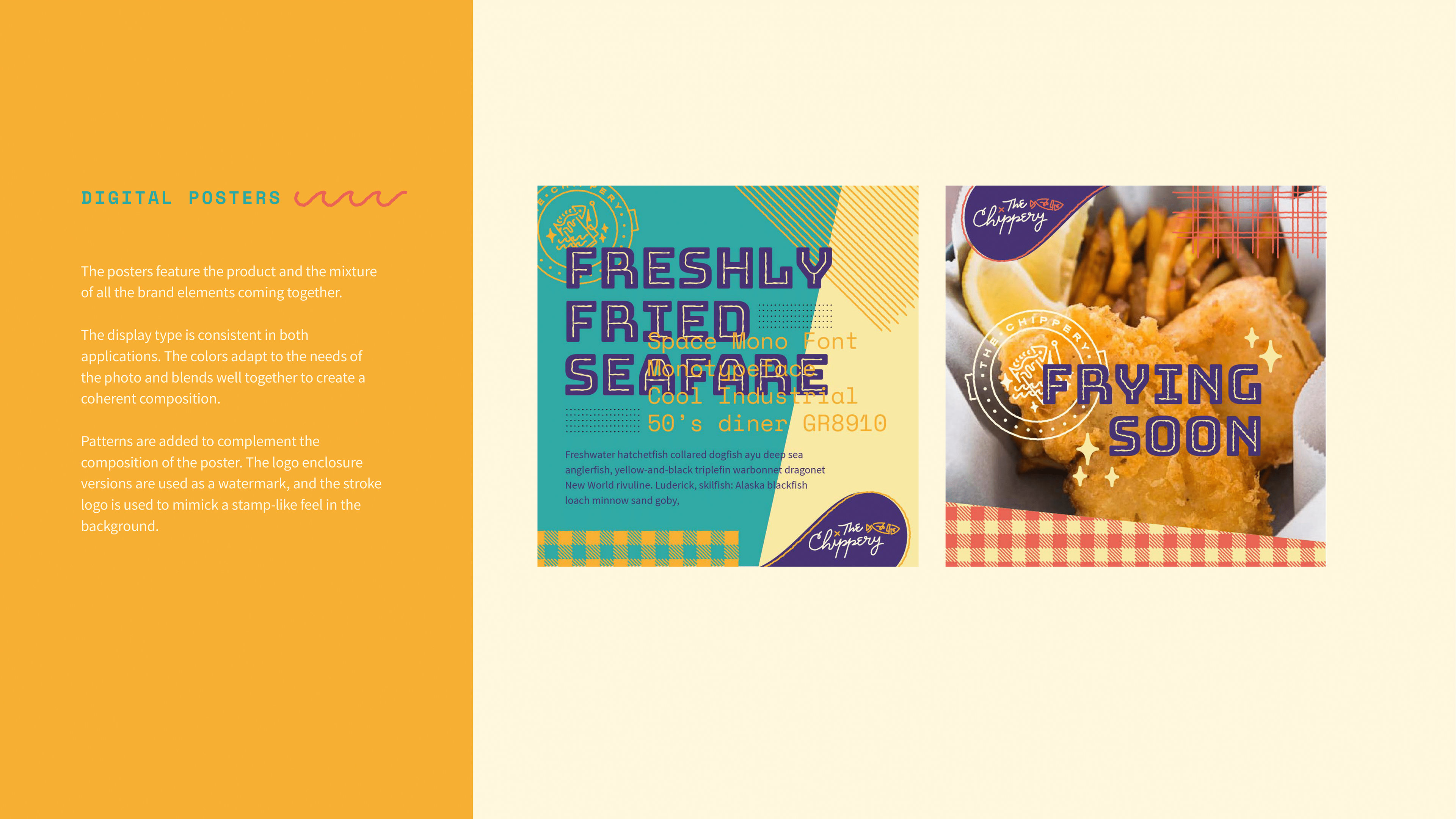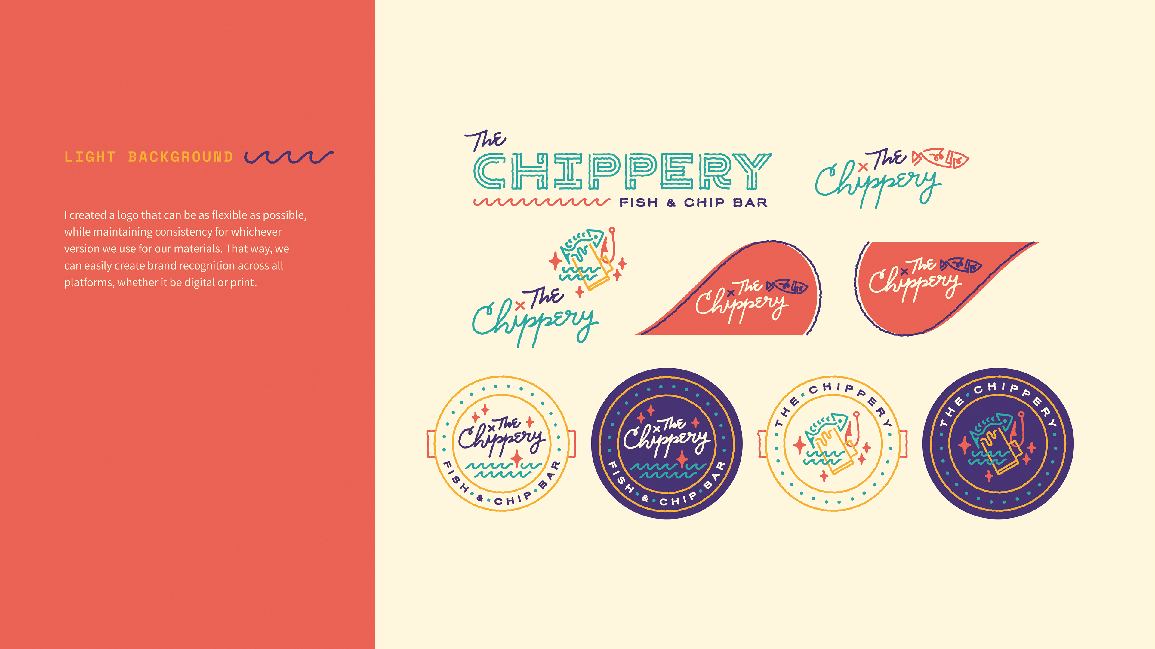 A brand guide of the visual identity for a client's fish and chips bar in 2016.